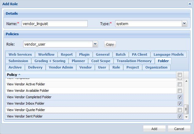 Vendor project managers (vendor user with the vendor_pm role) have the ability to claim submissions and then assign submission phases to vendor linguists. The vendor_pm role is available by default in Project Director, but is meant to function together with vendor users who have the vendor_linguist role.