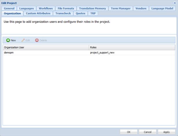 The new organization user is added to the project.