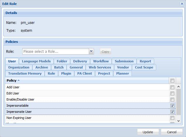The Role Details dialog box appears with the information for the selected role. Find below an example screenshot for system user types.