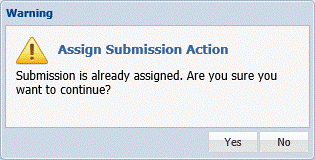 If the submission is already assigned, the following Warning message appears.