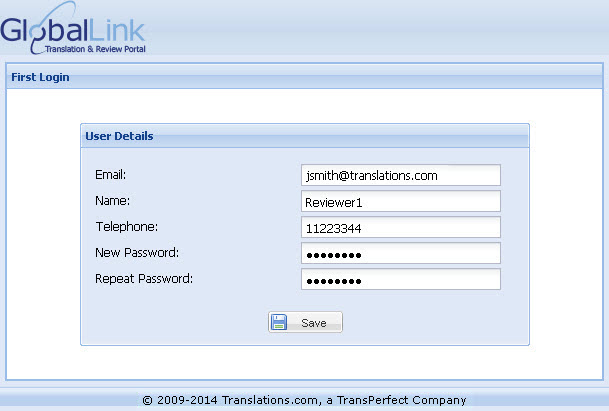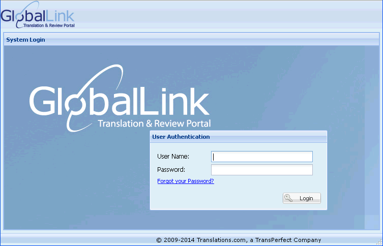 To login to the GlobalLink Translation & Review Portal: